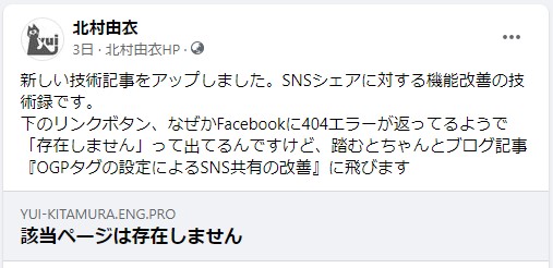 この投稿のリンクに対するサムネイルが「該当ページは存在しません」になっています。