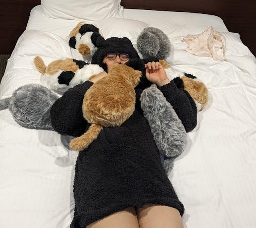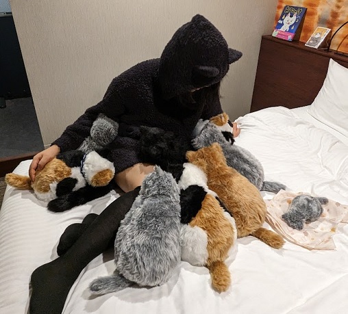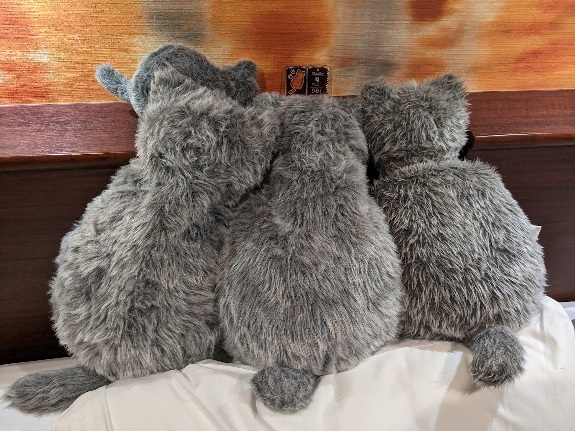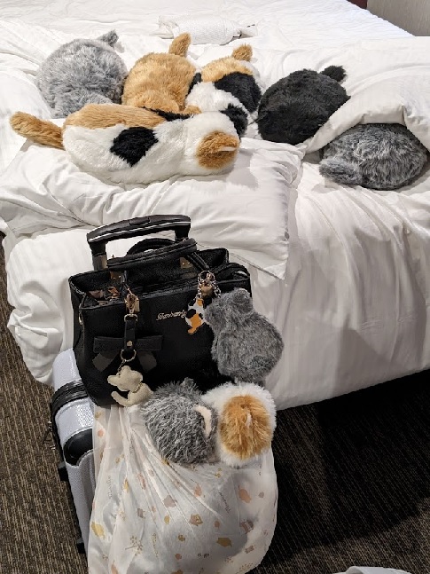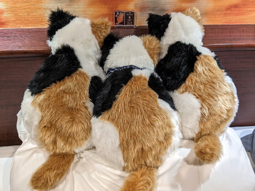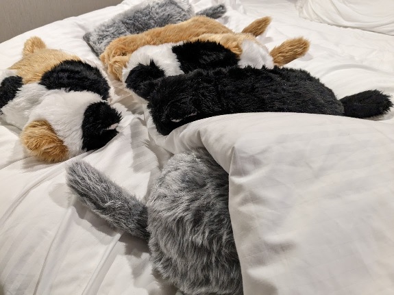 ベッドメイクをして退出。お部屋のミャウたちを可愛い感じに並べてみました