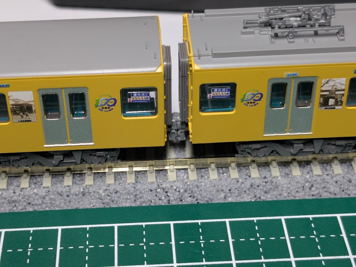 今回のモジュールは給電を要しないので、天面の塗装剥ぎは施工しませんでした。また、ジョイント部分が塗膜で埋まったことで、意図せずではあるものの、ロングレール風味に仕上がりました。